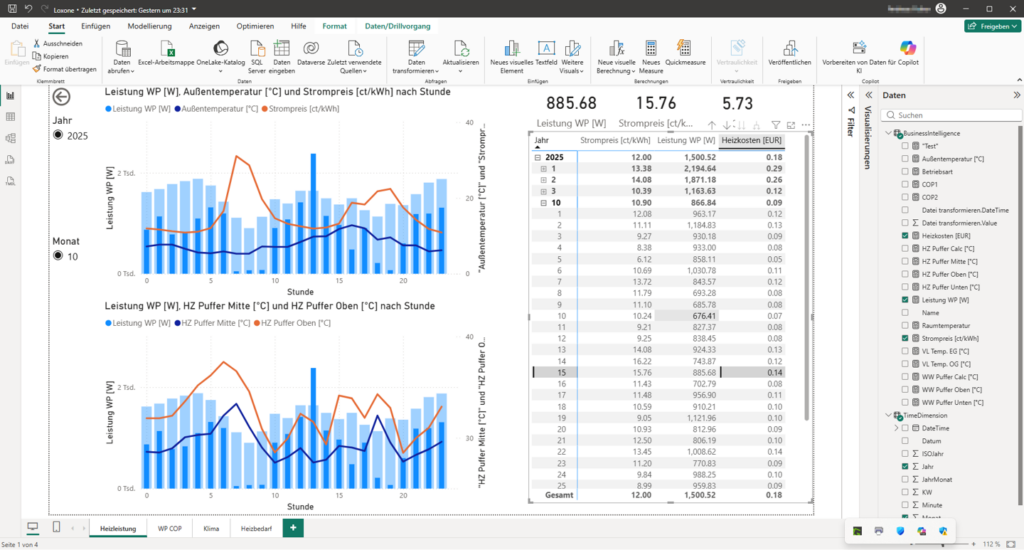 Durch Verwendung von BI Analyse Tools gewinnt man einen Eindruck über die Verschiebung des Leistungsbedarfs der Wärmepumpe in der Heizperiode von Jänner bis März und von Oktober bis Dezember (6 Monate) 2025. Das untenstehende Diagramm visualisiert die Eingangsleistung für die Heizung über die Tagesstunden (00:00 -23:59), und zeigt, dass sich die Einsatzzeit der Wärmepumpe in […]